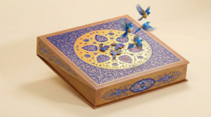 - چاپ: افست چهاررنگ با جزئیات بالا، همراه با هاتفویل طلایی گرم و یووی موضعی برای تاکید بر طرح